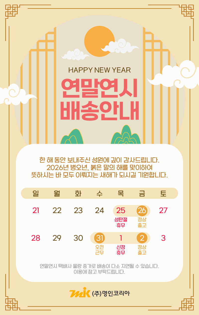 [공지] 2025년 연말연시 배송 안내 |